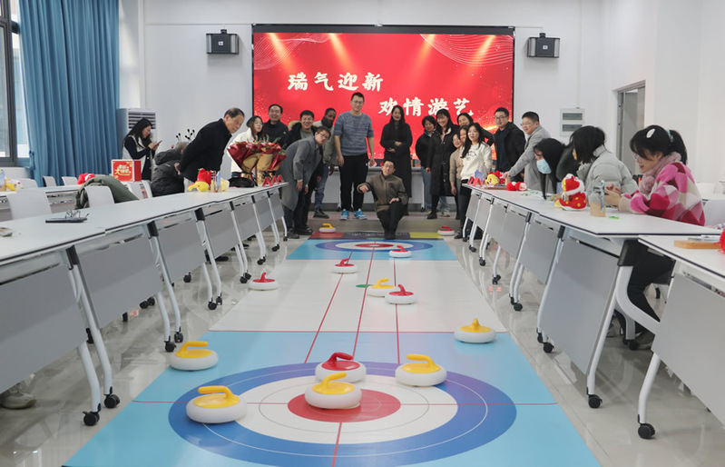 在迎新游艺活动中,教职工们积极参与旱地冰壶、飞镖、投壶等项目,欢声笑语不断。旱地冰壶比赛中,组成男女从两组,互相配合,体验着冰壶运动的乐趣;飞镖区,老师们凝神静气,瞄准靶心,一展身手;投壶区域更是吸引了众多参与者,大家排队等候,跃跃欲试,每一次成功的投掷都引来阵阵掌声。活动不仅增进了教职工之间的友谊,也展现了大家积极向上的精神风貌。