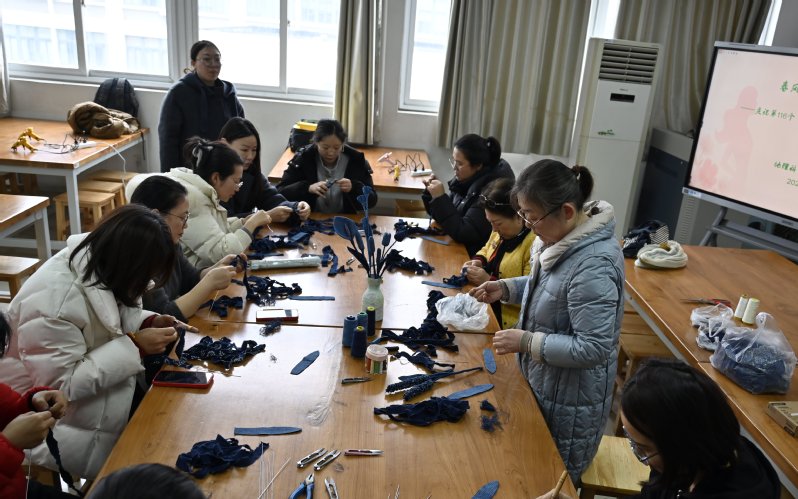 为庆祝第116个“三八”国际劳动妇女节,丰富教职工精神文化生活,3月5日下午,地理科学学院工会在工程训练中心306教室举办“春风送暖・布语生花”土布花束非遗手工体验活动。本次活动以国家级非物质文化遗产——土布为载体,带领教职工触摸传统手工艺的温度,感受非遗活态传承的魅力。学院女老师们参加了活动。