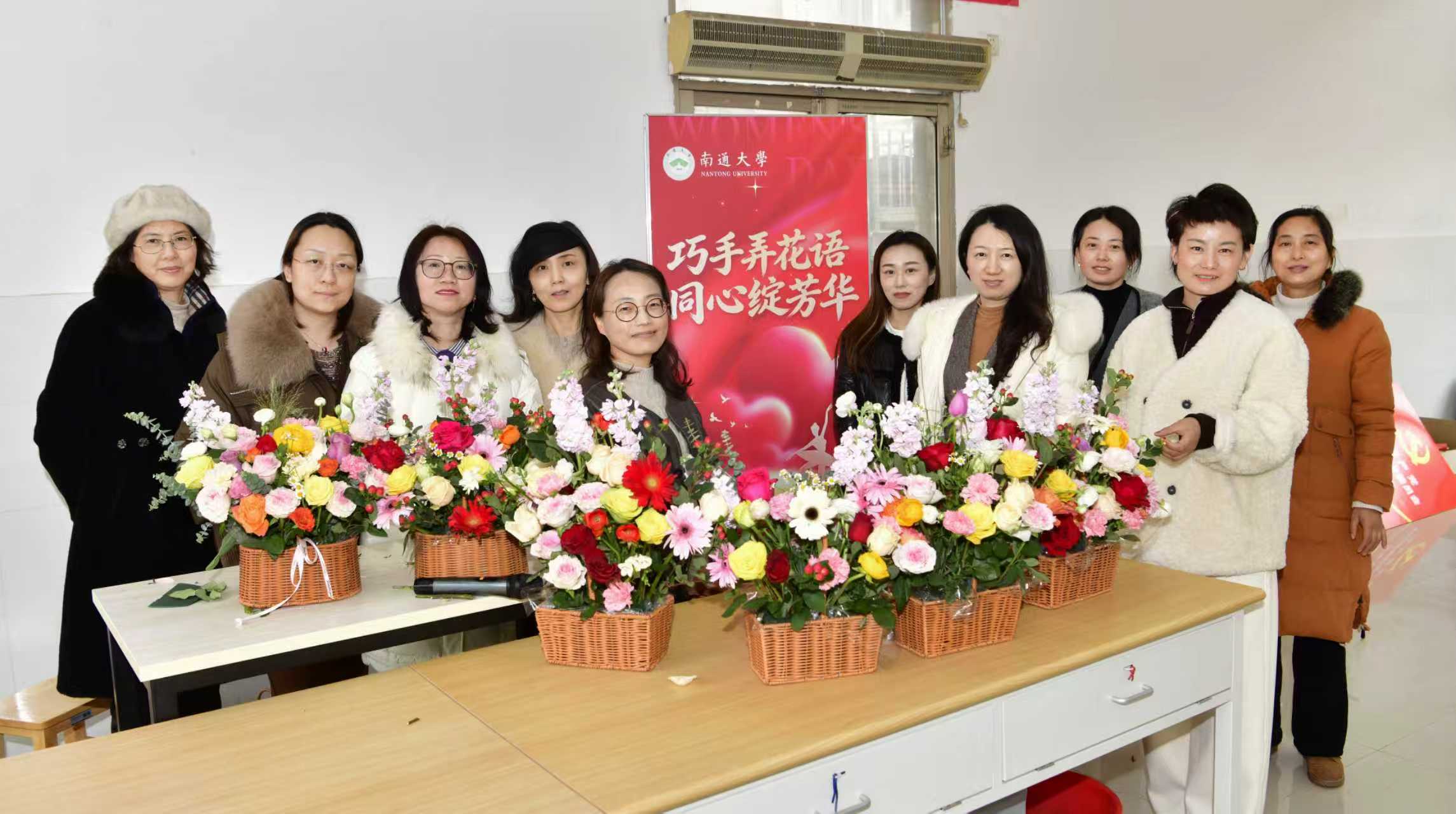阳春三月,芳华绽放。为庆祝第116个“三八”国际劳动妇女节,丰富女教职工精神文化生活,凝聚巾帼力量,3月4日下午,由南通大学离退休人员工作处分工会、后勤保障部分工会、国有资产管理处工会小组联合举办的“巧手弄花语 同心绽芳华”主题插花活动,在老同志活动中心一楼温馨举行。来自三个部门的女教职工欢聚一堂,以花为媒、以艺传情,共赴一场春日花艺之约。