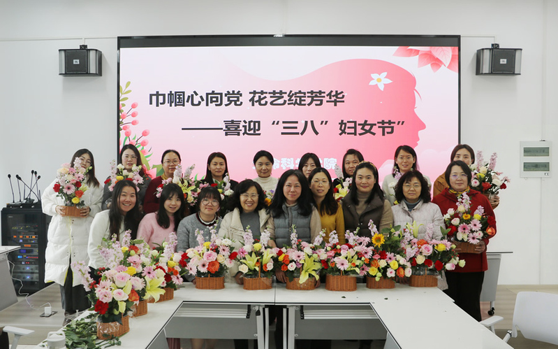 3月6日下午,为庆祝“三八”国际妇女节,提升女教职工的气质内涵,树立内外兼修的新时代女性形象,生命科学学院工会组织全体女教职工开展“巾帼心向党 花艺绽芳华”主题插花活动。